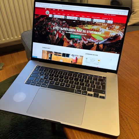 Apple MacBook Pro laptop med bakgrundsbelyst tangentbord och skärmvisning.
