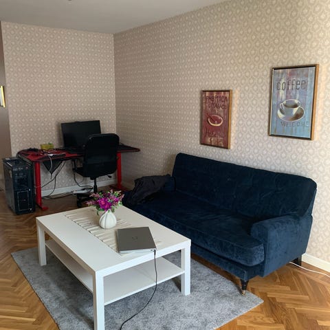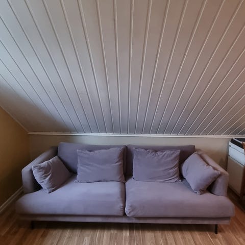 Soffan är professionellt ång- och textiltvättad inför försäljning – alla överdrag, inklusive stomme, har rengjorts för att vara ren och fräsch.