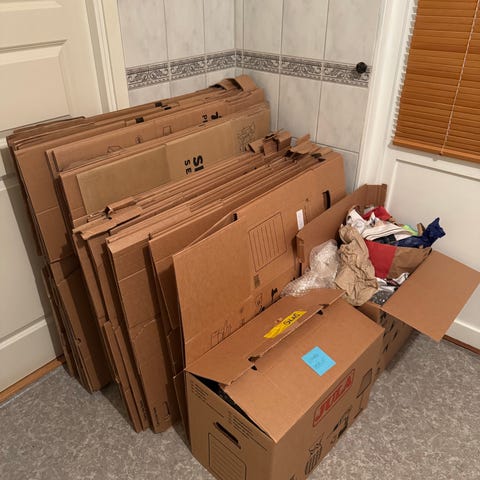 Flyttkartonger i bra skick, använda vid en flytt. 60 st mellanstora flyttkartonger, blir lagom tunga att bära, paket av 10 st. Samt 10 st små flyttkartonger från Shurgard, perfekt för böcker, dessa måste tejpas igen.