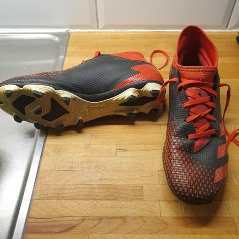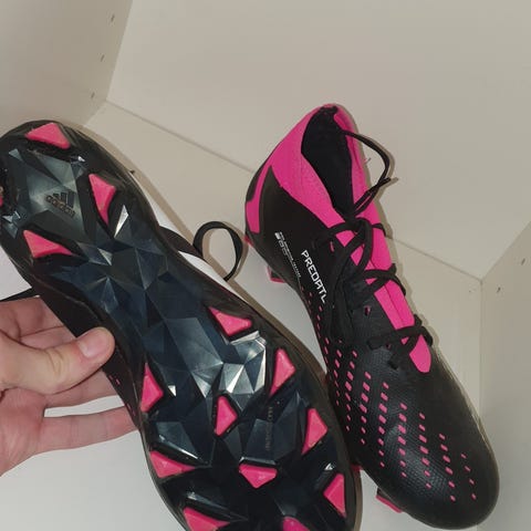 Puma fotbollsskor i svart färg, storlek 39. Skorna har dobbar för bättre grepp på gräsytor och är avsedda för användning vid fotbollsspel.