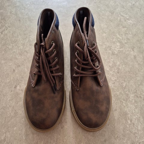Observera att ena skosnöret har blivit fransigt i änden. Det går fortfarande utmärkt att knyta, annars är det enkelt att byta ut.