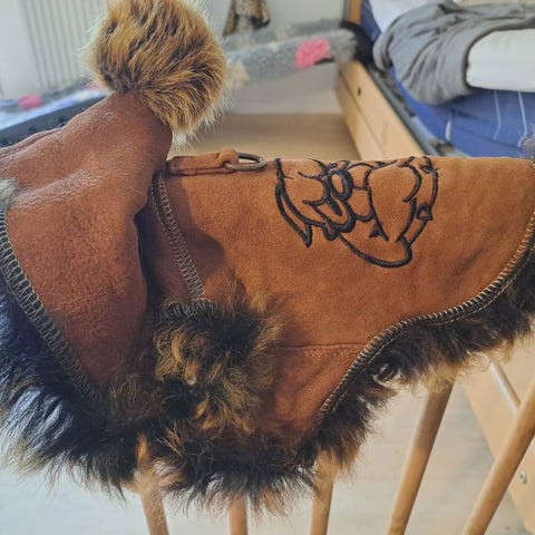 Täcket är i fint skick och håller hunden varm och torr under promenader i alla väder. Passar perfekt för höst, vinter och kyliga vårdagar.