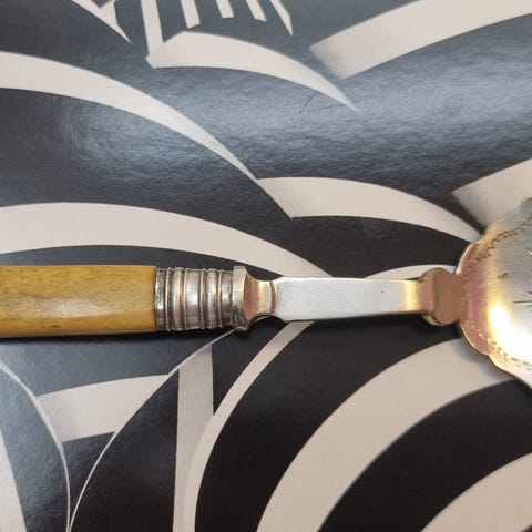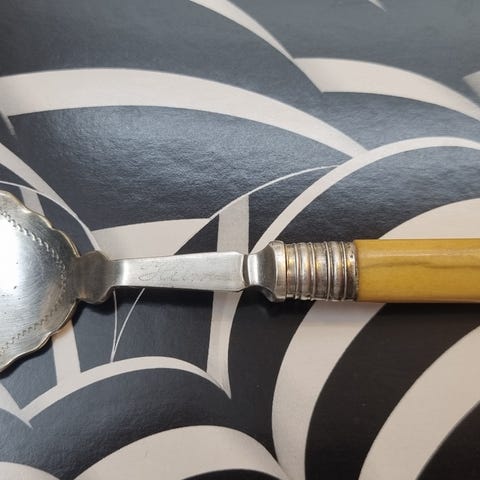 Blad i pärlemor, skaft i metall, silver?