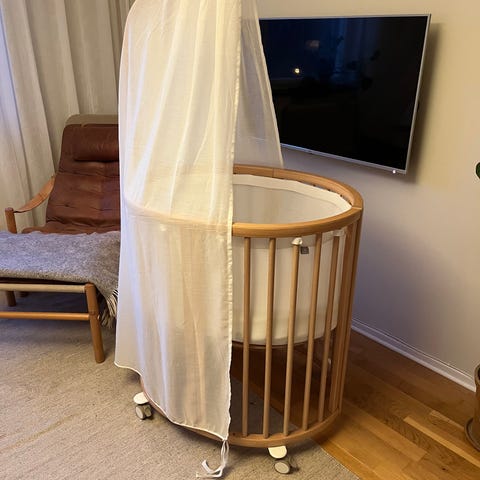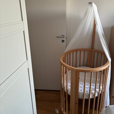 Fin spjälsäng i modell Stokke Sleepi Mini v3.