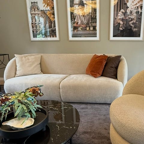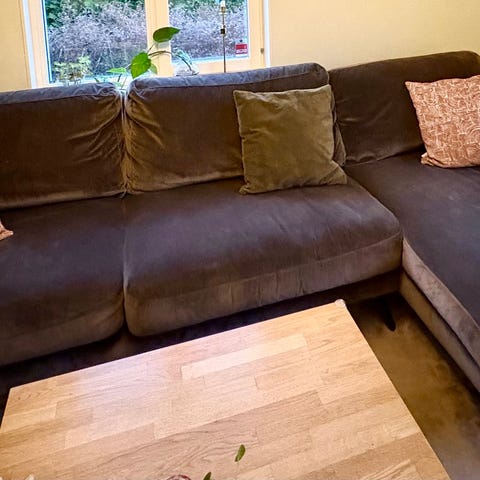 Denna soffa lämnar du inte på länge. Sällan har vi suttit i en soffa med en sådan komfort. Tillverkad på trästomme med nozagbotten. Dunfiber omsvepta dynor i kallskum, otroligt väl avvägda. Dubbla dekorsömmar runtom. Klädd i en ljusgrå slitstark härlig sammet. Inget för dig som inte vill mysa lääänge.