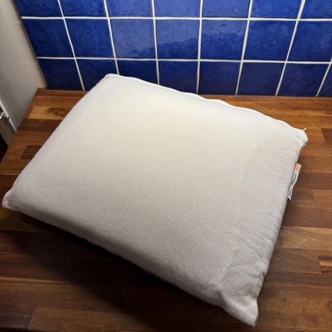 2 stycken ergonomiska kuddar för sido/ryggläge, med memoryskum från IKEA, Rosenskärm. Överdragen är smutsiga men går att ta av och tvätta. Kuddarna är sparsamt använda.