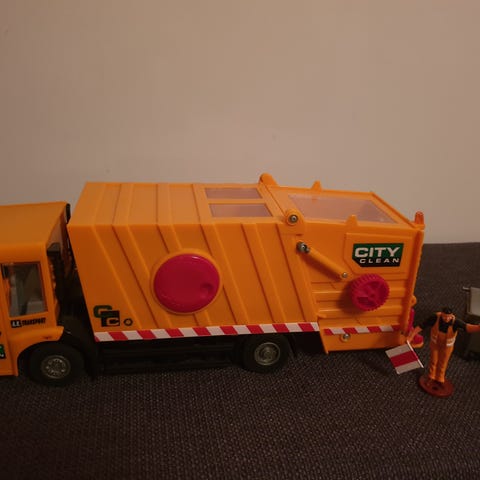 En stor sopbil från Dickie Toys med ljud & ljus som en sopbil med en soptunna till. Mått: 30x17 cm