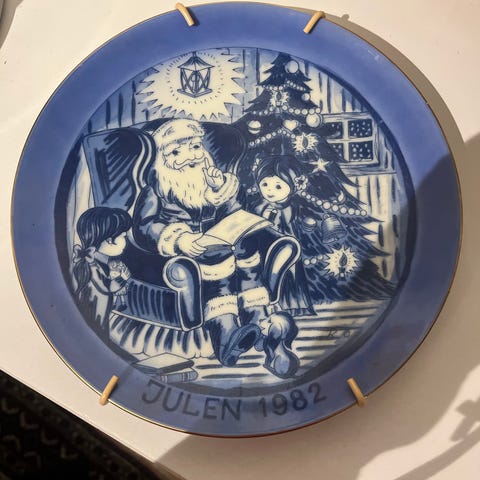 Bing & Grøndahl Julplatter 3-pack i blått porslin med olika julmotiv. Tallrikarna är dekorativa och samlarobjekt, lämpliga för visning eller som del av en samling.