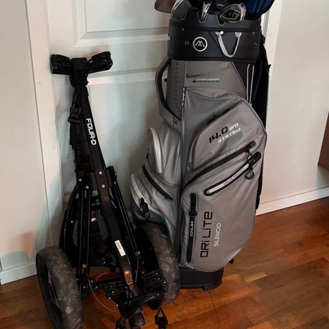 Säljer golfklubbor från 4D, för vänsterhänta! Modellen på klubborna är Ci250 Fourth dimension, och putten är 4D p660. Klubborna har mindre märken från användning, men inga sprickor eller rost. Puttern har dock slitet grepp. Dock är klubborna fullt fungerande och ser fortfarande generellt bra ut! Golfbagen är i bra skick, har benstöd, bärrem och många fack, samt även ett överdrag för klubborna. Dessa klubbor medföljer: 4, 5, 6, 7, 8, 9, PW, W430 och P.