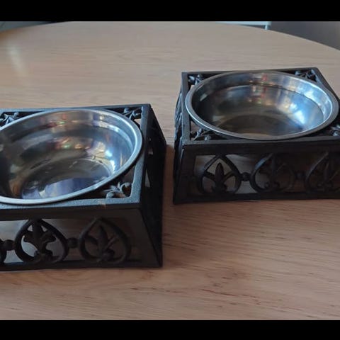 Säljer en exklusiv matstation från Lord Lou, anpassad för kortbenta hundar (t.ex. fransk bulldogg, tax, mops m.fl.).