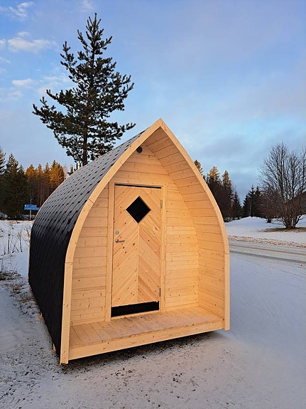 Välgjord bastustuga för 2-4 personer. Tak och väggar av 45mm norrländskt spontat virke av hög kvalitet och bastulavar i asp. Vedeldat bastuaggregat och rostfri skorsten, tak av shingel.