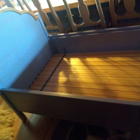 Juniorsäng IKEA i bokträ och vitt mdf madrass ca 9 cm och avtagbart tyg samt madrassskydd.
