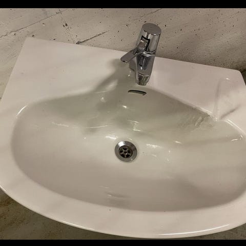 Doulton handfat i porslin med integrerad blandare. Produkten har en vit färg och är avsedd för badrum. Tvättstället har en klassisk design med två vred för varm och kall vattenhantering.