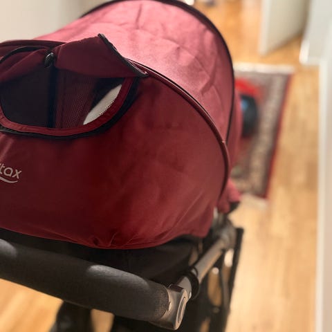 The stroller is gently used, in visibly good condition, has always been stored indoors and everything works exactly as it should. The large basket easily stores diaper bag, groceries and more, and the compact fold makes it easy to fit in the car.