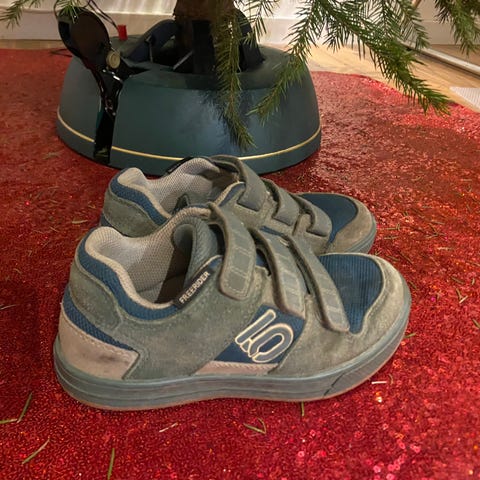 Five Ten Freedrider kids i storlek 35, blå färg. Bästa MTB-skorna i miniformat! Innersulan är lite sliten på ena skon och så är de lite smutsiga. Annars i ganska bra skick, då de bara använts till cykling. Kolla gärna in mina andra annonser på julklappar till aktiva barn.
