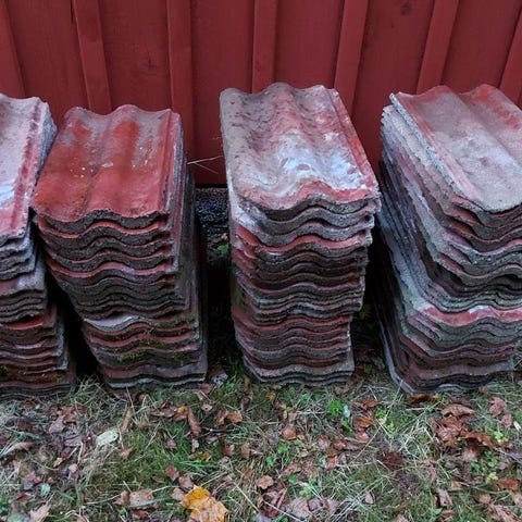 Takpannor i tegel, olika storlekar och former.