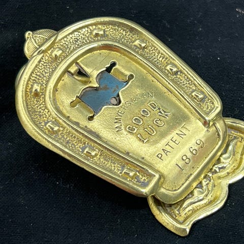 Antik klämma, good luck. Antique 1869 Good Luck Horsehoe.M. Myers & Son