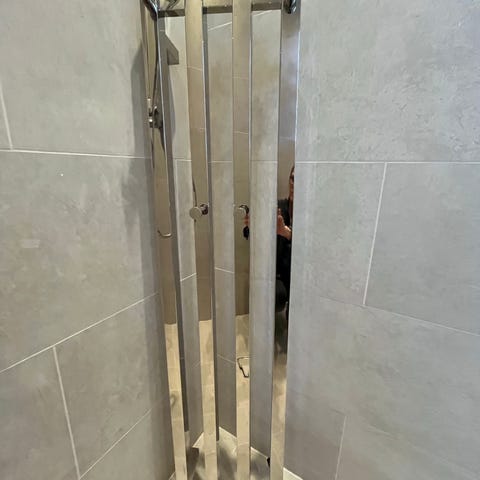 • Monterad i ett badrum men togs ner direkt då den blev för stor för utrymmet - den användes aldrig.