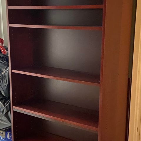 Tre bokhyller med sammalagd bredd på 150 cm.