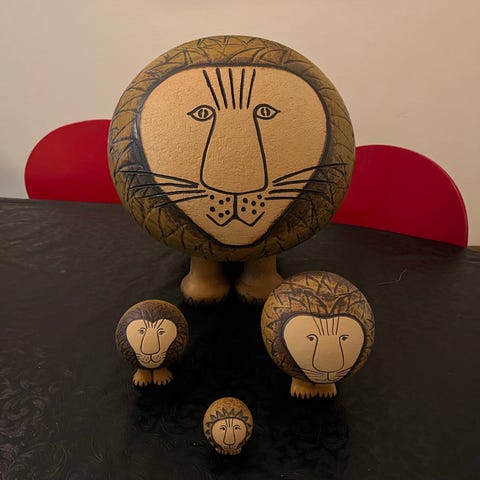 Lisa Larson Lejon figuriner i keramik i olika storlekar, det övriga sålt.
