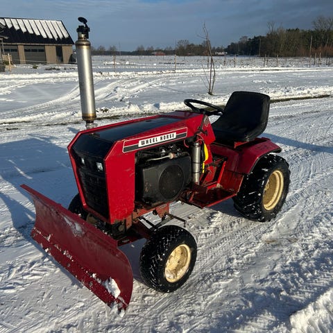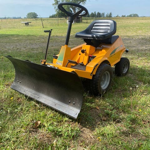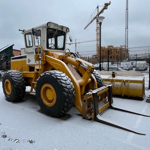 Holder traktor utrustad med plog och sandspridare. Traktorn har en förarhytt med sittplats och styrinstrument. Den är avsedd för användning vid snöröjning och halkbekämpning på vägar och andra ytor.