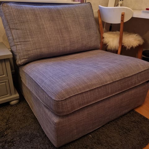 Smidig, snygg och praktisk bäddfåtölj i bra skick. Enkel att göra om till säng, perfekt för övernattningar. Sparsamt använd. Säljes på grund av flytt.