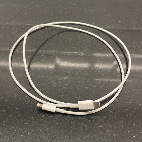 Apple laddare med vit kabel. Passar för laddning av kompatibla enheter.