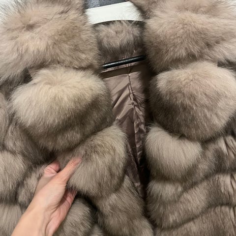 Begagnad men mycket sparsamt använd pälsjacka från Golander Påls AB Tranås. Osäker på storlek - gissar 38 small eller medium.