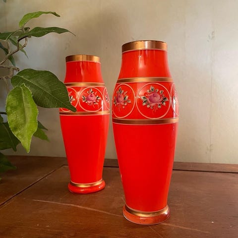 Antika vaser 2 st. Och en skål i nysilver och glas.