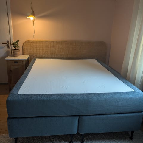 Kontinentalsäng från Mio med bäddmadrass Delux Sleep. Använd i ca 3 år men fortfarande i mycket fint skick, som ny. Få och knappt noterbara fläckar på bäddmadrassen.