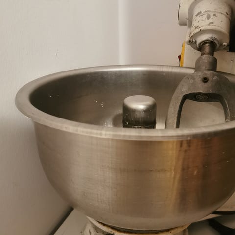 Precis servad Italianamacchine degblandare med en kapacitet på 60 liter. Utrustad med rostfri degskål och kontrollpanel med start- och nödstoppknapp, 2 st olika hastigheter. Maskinen är avsedd för blandning och bearbetning av deg i bageri- eller restaurangmiljö.