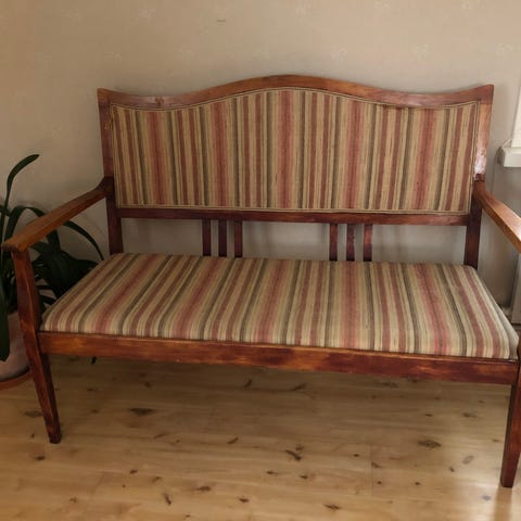 Gammal soffa i Alm med bra förvaring under locket.