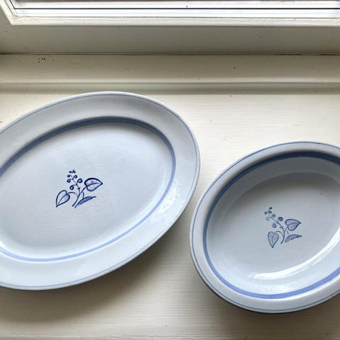 Säljer ett fantastiskt coolt set porslin från Churchill England modell Lima med rosa och blå rand.