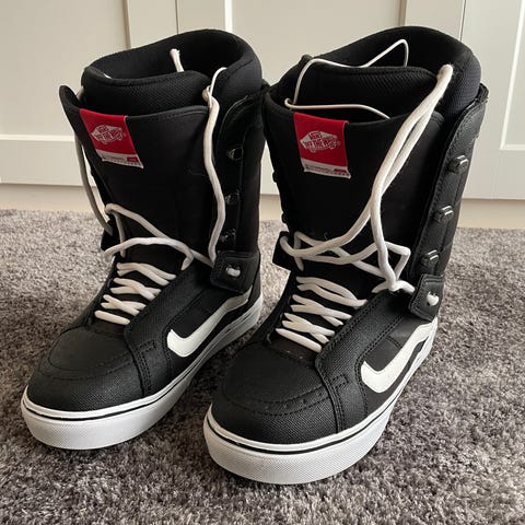 Vans Hi-Standard og snowboardboots i svart med vita detaljer. Aldrig använda, i nyskick, perfekt som julklapp!