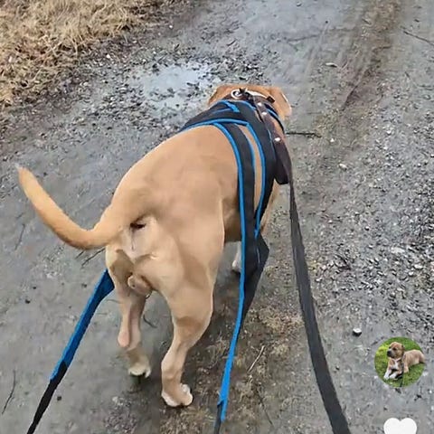 Modellen på bild väger 29 kilo och är iklädd XL (lila), halsmått cirka 45 cm.