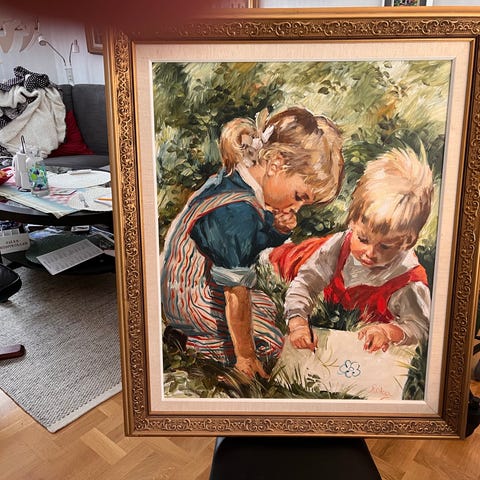 En mycket trevlig gammal signerad olja av Charles Roka 96x81cm.