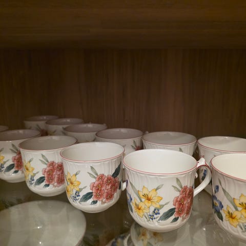 Superfin kopp med fat från tyska Villeroy & Boch. Perfekt skick. Snyggt mönster både på kopp och fat. Medelstora koppen, perfekt till morgonkaffet!