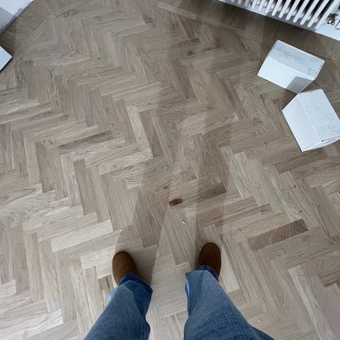 Ek fanér bitar oanvända för hylla eller liten skiva