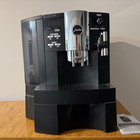 Jura Impressa J85 kaffemaskin i vit färg. Maskinen är utrustad med pekskärm och har flera funktioner för att brygga kaffe. Den är designad för att användas i hem eller kontor och är tillverkad av hållbara material. 6 år gammal och är mkt bra skick. Nypris 18000:-