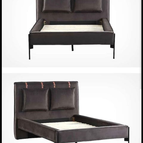 Säljer vår superfina och välskötta säng i mörkgrå sammet 180x200, hund finns i hemmet men har inte sovit i sängen.