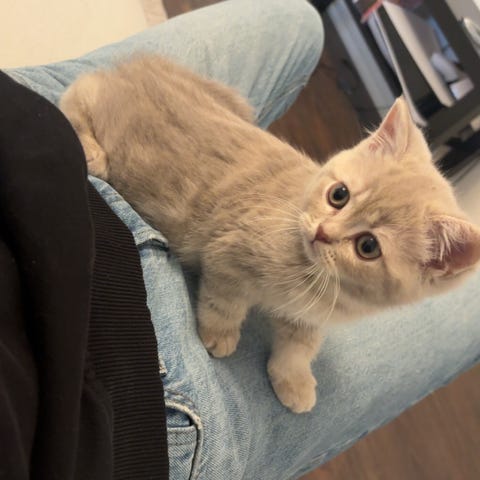 Korthårig hona. Leveransklar 20 december. 75% brittisk långhårig, älskar uppmärksamhet och gosar gärna. Trivs bra med andra katter och med barn.