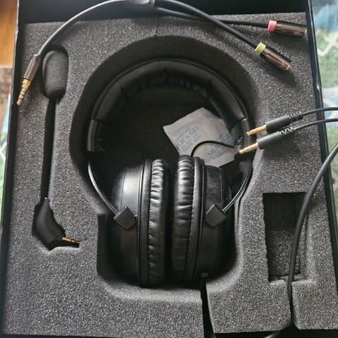 Köpte det för ett tag sen men hamnade aldrig i användning. Testade en annan modell istället och dessa ligger bara här. Allt ligger i originalförpackningen, aldrig öppnat. Det är ett gaming headset med roterbara öronkupor och avtagbar mikrofon, har bara hört bra saker om det