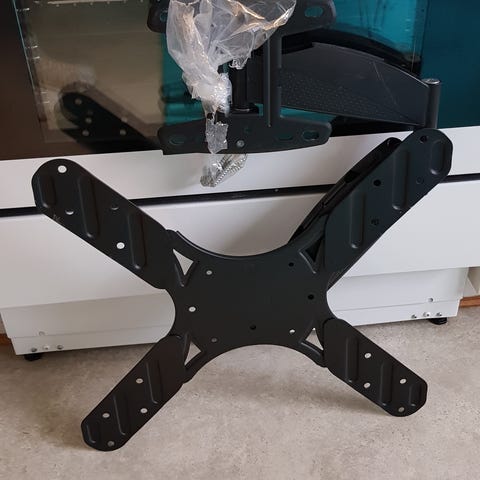 Stabil TV-hylla på hjul i perfekt skick. Passar 40-85 tums TV. Går att höja/sänka. Har ett hyllplan för soundbar, en pegboard undertill för att fästa kontrollers etc. och en stor bottenhylla för tv-box och spelkonsol.