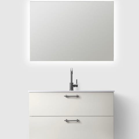 Inredning TRAY A3.24 och BOX SMALL A3.22 ingår i alla spegelskåp. Förmonterat eluttag ingår alltid. Smidig montering med hel upphängningsskena. Djup 140 mm. Spegel till badrummet.