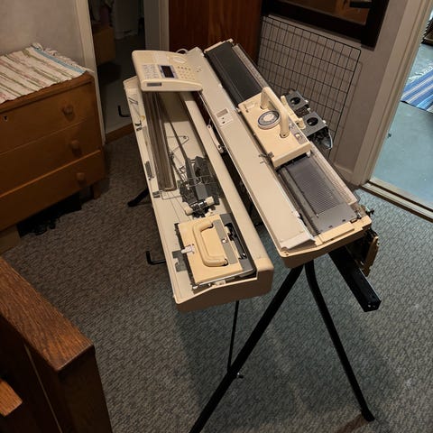 Standardstickare, 4,5 mm mellan nålarna. Komplett med alla tillbehör. Köpt från en tysk stickmaskinsåterförsäljare helt nyrenoverad för ett år sedan. Säljes nu p g a avtagande intresse och nackproblem. Maskinen finns i Sjöbo (Skåne). Hämtas helst på plats, annars betalar köparen frakten.