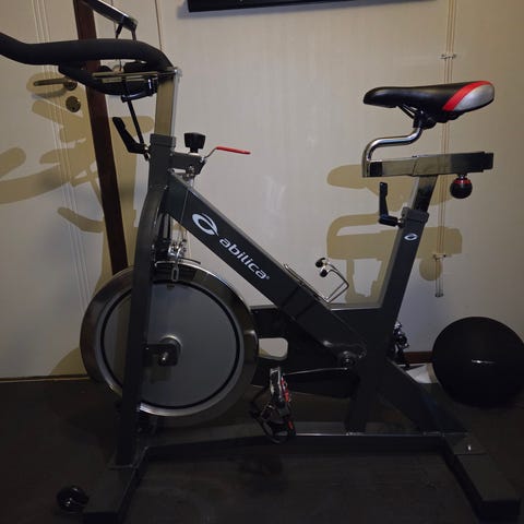 spinningcykel med justerbart styre och sadel, utrustad med vattenflaskhållare. Inte speciellt mycket använd. Märke Meridan. Boxningsäcken är 160cm