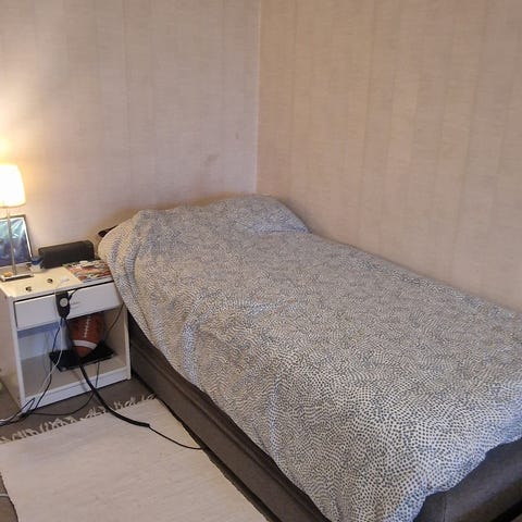 Möblerna är stabila, rena och kommer från ett rök- och djurfritt hem. Förvaringen under sängen fungerar perfekt och rymmer mycket.