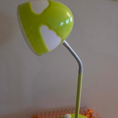 IKEA bordslampa i vit färg. Lampan har en rund bas och en skärm i metall. Designad för användning som belysning på bord eller skrivbord.