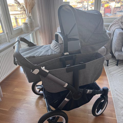 Nu Säljer vi vår fantastika bugaboo i elegant grå färg en riktig lyxig och smidig vagn som passar alla underlag . Perfekt båda för nyfödd och äldre barn . Den är i mycket fint skick . Vagnen är lättkörd smidig och perfekt i båda stan och terräng