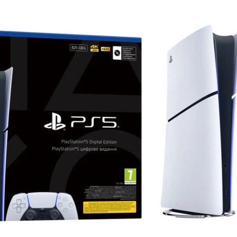 Sony Playstation 5 spelkonsol med tillhörande handkontroll. Konsolen är designad för spel i hög prestanda och erbjuder nya möjligheter inom spelupplevelse.
